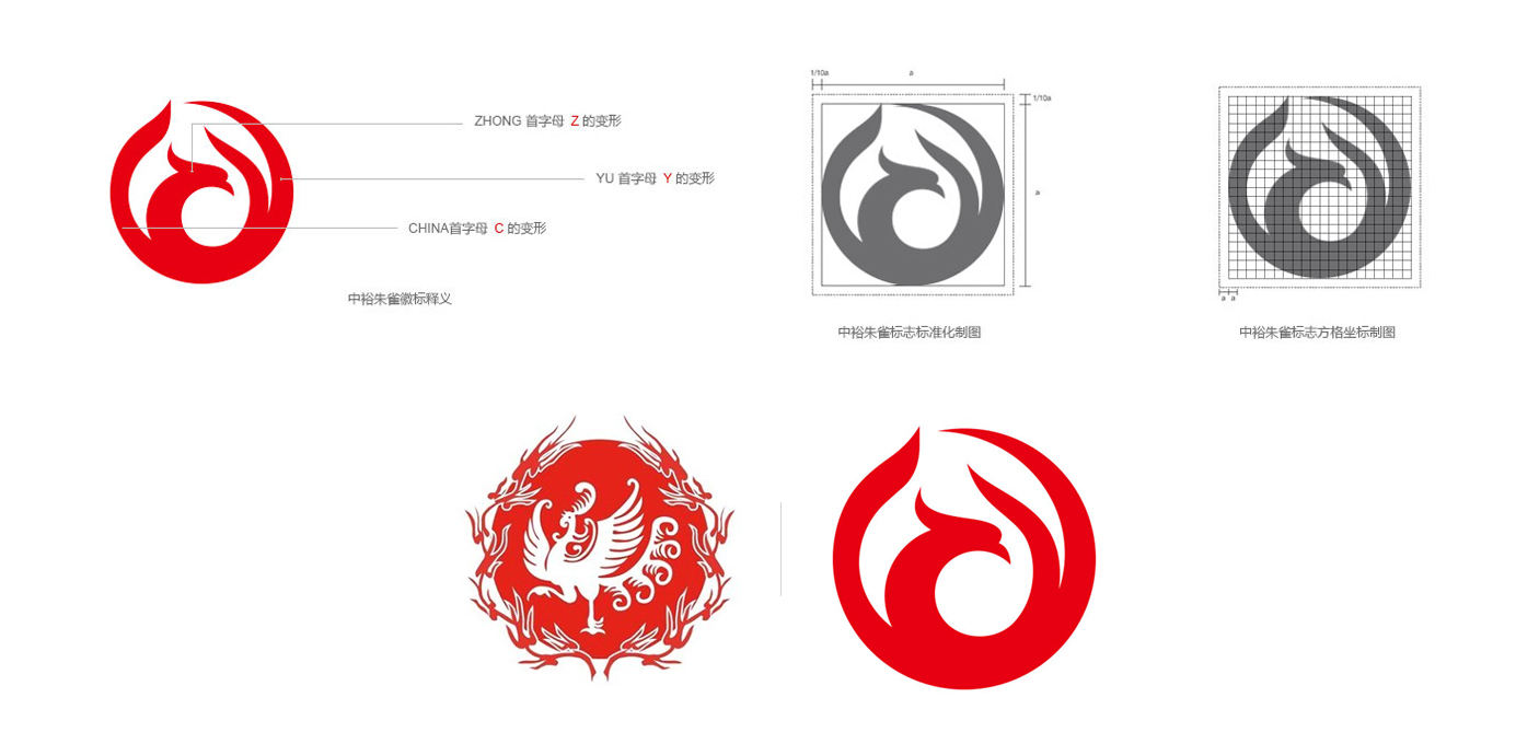 基本概念: 依然借助“朱雀是太陽鳥、火鳳凰、日精,是中國四大靈獸之一,是太陽的化身”的傳統(tǒng)文化內涵。取其掌控能源、服務大眾、安全、恒久、吉祥、生生不息之涵義,與中裕行業(yè)性質和企業(yè)文化相吻合。