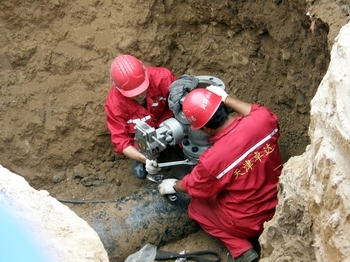 據(jù)悉,此次工程主要由煤氣集團(tuán)組織實(shí)施,需在義鄭高壓煤氣管線上開(kāi)孔,技術(shù)難度大、條件復(fù)雜。開(kāi)工前偃師公司及總部相關(guān)領(lǐng)導(dǎo)與省煤氣集團(tuán)就實(shí)施方案進(jìn)行了多次商討修訂,對(duì)施工前的各項(xiàng)準(zhǔn)備工作進(jìn)行了了認(rèn)真細(xì)致的安排,并自天津卓達(dá)公司聘請(qǐng)樂(lè)專(zhuān)業(yè)開(kāi)孔技術(shù)人員進(jìn)行施工。6月18日上午9時(shí),開(kāi)孔作業(yè)按照預(yù)定的方案啟動(dòng),防腐層剝離、焊制旁通、安裝球閥、安置液壓開(kāi)孔具……相應(yīng)工作依次展開(kāi),下午3時(shí),開(kāi)孔對(duì)接作業(yè)宣告順利完成,至此,偃師顧縣工業(yè)區(qū)管道燃?xì)夤こ探ㄔO(shè)關(guān)鍵性的一戰(zhàn)順利告捷。