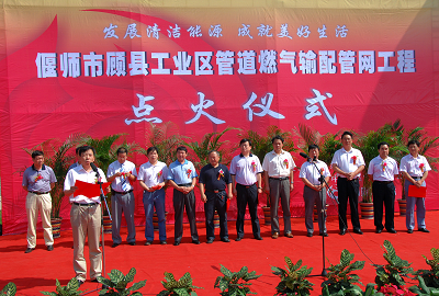 偃師公司訊:2009年8月12日上午,偃師市顧縣工業(yè)區(qū)管道燃?xì)廨斉涔芫W(wǎng)工程點火儀式在顧縣鎮(zhèn)隆重舉行。偃師市市委書記尚英照、代市長劉尚進(jìn)、副市長張俊杰、政協(xié)主席張振濤、人大副主任王宗燦;省煤氣集團(tuán)總經(jīng)理于遂欽、副總經(jīng)理楊瑋、管道公司總經(jīng)理張合壽、供銷處處長王宣雅;中裕能源控股有限公司總裁魯肇衡等領(lǐng)導(dǎo)出席了儀式。出席儀式的還有偃師市有關(guān)鄉(xiāng)鎮(zhèn)、部門負(fù)責(zé)人,用戶企業(yè)負(fù)責(zé)人等。洛陽電視臺、偃師電視臺等新聞媒體對此次儀式活動進(jìn)行了采訪報道。