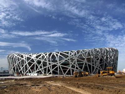 國家體育場(chǎng)的“鳥巢”是由一系列輻射式門式鋼桁架圍繞碗狀坐席區(qū)旋轉(zhuǎn)而成,結(jié)構(gòu)科學(xué)簡(jiǎn)潔,設(shè)計(jì)新穎獨(dú)特,為國際上極富特色的巨型建筑。