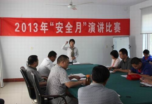 永城公司訊 6月是全國(guó)安全月,為了深入開展安全生產(chǎn)宣傳,營(yíng)造濃厚的安全文化氛圍,提高全體員工的安全生產(chǎn)意識(shí),預(yù)防和減少安全事故的發(fā)生。13日下午,一場(chǎng)以“安全、責(zé)任、幸福”為主題的安全月演講比賽在永城公司二樓會(huì)議室舉行。永城公司總經(jīng)理郭穎靈及公司領(lǐng)導(dǎo)班子成員組成評(píng)委會(huì)對(duì)比賽進(jìn)行了評(píng)判。