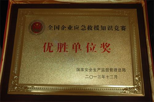 榮獲“全國企業(yè)應(yīng)急救援知識競賽優(yōu)勝單位獎”