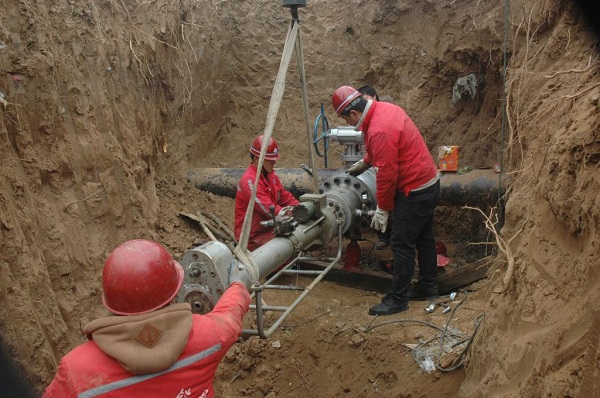 此前,濟源市次高壓燃氣管網(wǎng)呈U型結構運行,一路氣源從中馬頭天然氣門站由東向西北方向輸供,另一路從東郭路天然氣門站由東向西南方向輸供,兩路次高壓管道通過西環(huán)路接通。2014年,基于濟源市新增供氣渠道——安洛線孟州至濟源天然氣支線的投運,濟源公司適時優(yōu)化管網(wǎng)結構,啟動了東二環(huán)(濟源大道至堽頭段)次高壓天然氣管道工程建設,并于今年1月中旬竣工。該管道全長1.8公里,設計壓力1.6MPa,管道兩端分別與正在運行的次高壓主管道交匯。1月15日,濟源公司順利實施了原有在運次高壓管道的兩處帶氣開孔作業(yè),在不停氣的情況下完成了新舊管網(wǎng)對接。