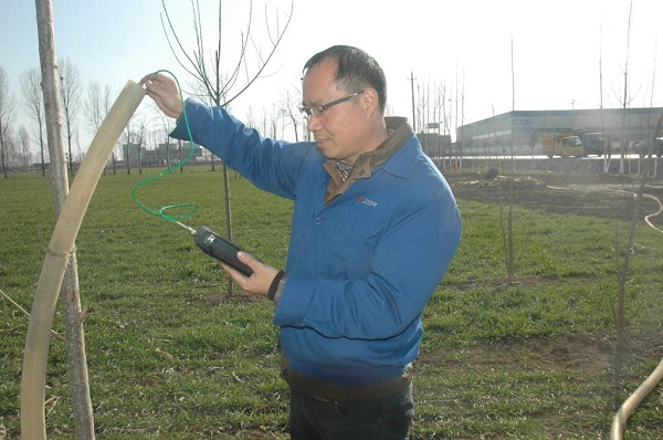 在東二環(huán)次高壓管道置換現(xiàn)場工作人員檢測來氣成分