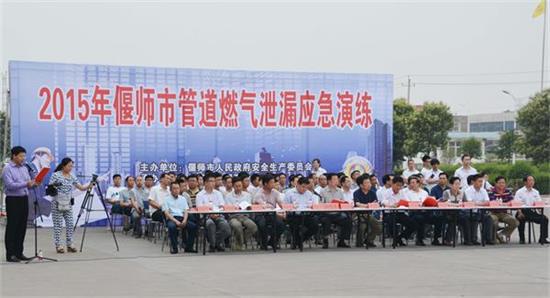 偃師市委書記宋義林,偃師市委副書記、市長李靈敏,洛陽市安監(jiān)局副局長孫獻國,市政府副市長張捍衛(wèi),偃師市安委會副主任、安監(jiān)局局長韓獻國,公用事業(yè)局局長王耀宗,集團副總裁盧迎九、管理總部人力文化部經理毛海軍,偃師中裕燃氣總經理段區(qū)高,洛陽眾品食業(yè)有限公司總經理時曉光,以及偃師市相關委局、各鎮(zhèn)區(qū)領導出席并觀摩了此次演練。