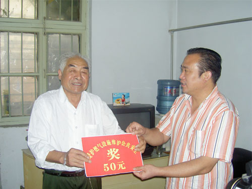 "焦作公司訊 9月15日,焦作公司副總經(jīng)理邢衛(wèi)東、鄭峰一行登門感謝舉報(bào)破壞燃?xì)庠O(shè)施者,并現(xiàn)場頒發(fā)獎(jiǎng)品和獎(jiǎng)金50元。