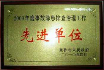 獲得“2009年度隱患排查治理工作先進單位”榮譽稱號