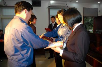濟(jì)源公司班子領(lǐng)導(dǎo)為獲獎(jiǎng)員工頒獎(jiǎng)