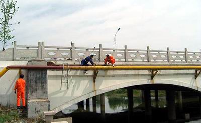 期間,針對架空管道排檢、維護過程中存在的無專業(yè)維護人員、無高空作業(yè)設(shè)施、無專門除銹及噴漆設(shè)備等困難,臨沂中燃公司員工在嚴(yán)格貫徹落實"安全第一、預(yù)防為主、厲行節(jié)約、綜合整治"方針的前提下,抽調(diào)巡線及門站工作人員,自己動手對輸配管網(wǎng)系統(tǒng)中的架空管道、門站露天設(shè)備等進行了全面除銹防腐工作,有效提高了設(shè)備的耐腐蝕性和安全運行的可靠性,大大延長了設(shè)備的使用壽命。