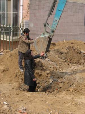 可聞?dòng)嵹s到的施工方負(fù)責(zé)人厲聲拒絕了她的要求,堅(jiān)持讓挖掘機(jī)繼續(xù)開挖,聲稱他們租賃挖掘機(jī)的費(fèi)用是200元/小時(shí),若采用人工挖掘至少要3個(gè)小時(shí),不僅耗時(shí)長效率低,還要照樣支付租賃費(fèi)。在施工方負(fù)責(zé)人的嚴(yán)令下,挖掘機(jī)重新開動(dòng),張牙舞爪地晃動(dòng)著巨大的鏟子緩緩前行。