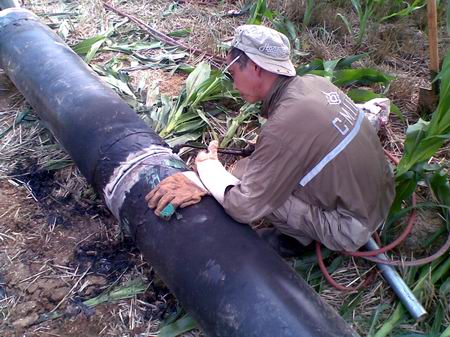 工地上,轟隆隆的挖掘機一刻不停地加緊作業(yè),龐大的壓路機穿梭來往,場外的施工人員忙著鋼管焊接、溝槽回填……各項工作如火如荼、緊張有序地進行著。此時雖已避過高溫時段,但酷熱煩悶的高溫天氣還是讓人難以忍受,站在那里沒幾分鐘,我便開始渾身冒汗了。望向旁邊的施工人員,烈日的暴曬和電焊的灼熱早已使他們衣衫浸透、汗流浹背,而他們卻渾然不覺,臉上滿是認真專注的神情。此時此刻,我才真正體會到他們嘴中所說的“晴天一身汗,雨天一身泥”的含義,這是他們工作狀態(tài)的真實寫照??粗麄冋橥度氲赝夜ぷ髦?,便不好意思上前打擾,開始獨自向前走去。