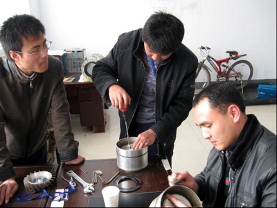 對癥方可下藥。在仔細分析了流量計表現(xiàn)出來的癥狀之后,工作人員已基本可以肯定征兆的源頭在于軸承了,下步要做的工作就是驗證這一推論、同時解決相應問題。零件被一一拆卸下來,期間費了大家不少功夫,尤其是對“罪魁禍首”軸承的拆分,這個指甲蓋大小的“精密元件”著實讓我們這幫大老爺們費了不少的勁兒,連縫衣針和水果刀都派上用場了。以至于在成功清除掉卡在軸承滾珠與軸承內壁之間的雜質、使其恢復正常運作之后,我們都有點不敢相信真是自己做到的。