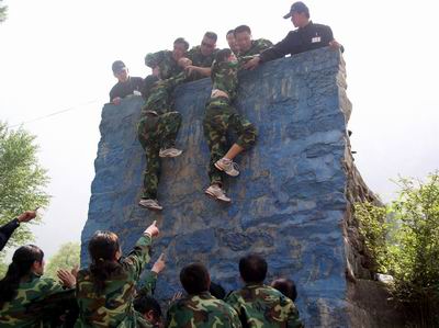 矗立在約1.5米的高臺(tái)上,身下是隊(duì)友用手臂搭成的軟梯,交錯(cuò)往復(fù),一如心中難以平息的忐忑。就是那毅然決然的躍起,也因之平添了幾分躊躇。于是,當(dāng)平穩(wěn)落地的一刻到來時(shí),身心或許仍因過度緊張而呈現(xiàn)出些微的乏力,大腦卻不由自主的陷入了深沉的思考——信任、團(tuán)隊(duì)、協(xié)作、高效……這些平時(shí)說泛了的字眼,此時(shí)卻在每個(gè)人的精神深處烙下了不可磨滅的深刻印象。