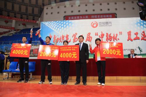 比賽結(jié)束后,經(jīng)組委會(huì)評(píng)定,濟(jì)源中裕公司、臨沂中裕燃?xì)夤緲s獲本屆運(yùn)動(dòng)會(huì)的“優(yōu)秀組織獎(jiǎng)”,漯河中裕公司榮獲本屆運(yùn)動(dòng)會(huì)的“體育道德風(fēng)尚獎(jiǎng)”。