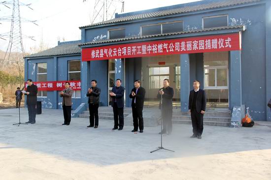 焦作公司訊 12月7日上午9點,“修武縣氣化云臺項目開工暨中裕燃?xì)饷利惣覉@捐贈儀式”在云臺山景區(qū)舉行,修武縣副縣長臧振田、修武縣政協(xié)副主席高育才、岸上鄉(xiāng)黨委書記徐新勇,焦作中裕監(jiān)事會主席王振新、副總經(jīng)理臺銘俊、劉道成出席了開工暨捐贈儀式。