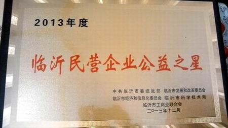 榮獲“沂蒙名商、臨沂民營企業(yè)公益之星”稱號