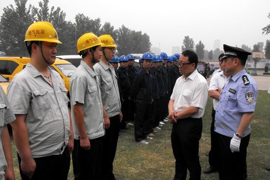 當天上午10:00,隨著沁陽市反恐辦主任、公安局局長鄧予生通過數(shù)字對講機下達指令,沁陽市反暴恐緊急拉動演練活動正式開始,演練科目包括:應(yīng)急指揮→快速反應(yīng)→整體開進→應(yīng)急通信→現(xiàn)場指揮→現(xiàn)場處置→活動講評等。各參與單位各有不同的演練任務(wù),沁陽分公司的任務(wù)是配備專業(yè)搶險車2輛、隊員10人攜帶搶險設(shè)備,迅速到達現(xiàn)場,做好對燃氣設(shè)施搶修的準備。整個演練場面氣勢恢宏,各項動作緊張而有序,所有參演人員都精神飽滿、熱情高漲,展示了各參演單位應(yīng)急力量良好的精神風貌,11:00整演練結(jié)束。