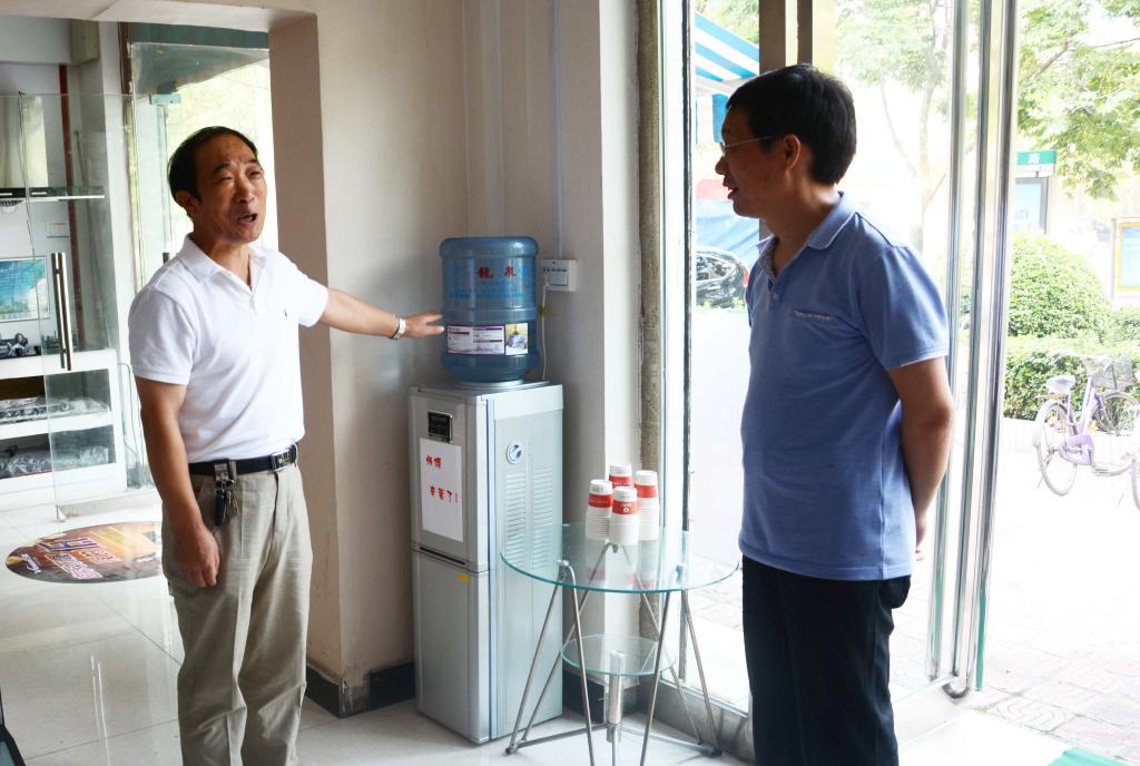揭牌后,史主席走進營業(yè)廳,恰遇正在接水喝的環(huán)衛(wèi)工人張大娘,她高興地說:“這里面服務(wù)好又涼快,我們干活累了的時候都能夠到這兒來歇會兒、喝口水,解解乏,真不賴。”