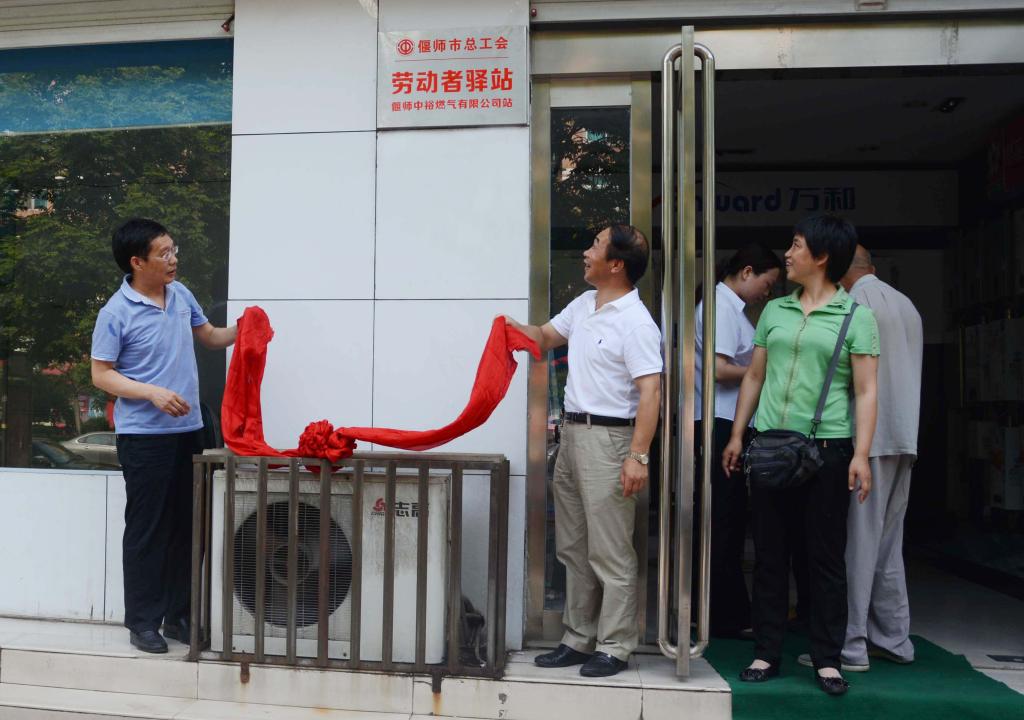偃師公司訊 7月30日,偃師市總工會主席史書通、副主席劉漫麗一行到訪偃師中裕,為“勞動者驛站”揭牌。