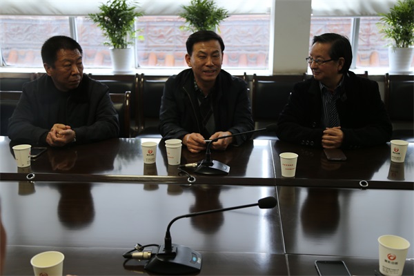 河南省住房和城鄉(xiāng)建設(shè)廳城建處副處長(zhǎng)范軍付先生(中)、中國(guó)建筑學(xué)會(huì)建筑施工分會(huì)王新泉教授(右)、焦作市住房和城鄉(xiāng)建設(shè)局副局長(zhǎng)李戰(zhàn)勝先生(左)聽(tīng)取培訓(xùn)基地建設(shè)方案匯報(bào)