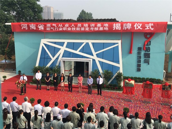 隨后,在禮花音樂聲中,隋耀光董事長和韓煦主任、馬殿申秘書長和黃飚副總裁、馬偉科長和周敏副主任、范軍付調(diào)研員和崔萍科長相繼為“中裕燃氣焦作培訓基地”、“中國城市燃氣協(xié)會河南省培訓基地焦作分部”、“河南省市政公用業(yè)行業(yè)職業(yè)技能鑒定站燃氣技工實操考核基地”、“河南省城鎮(zhèn)燃氣經(jīng)營企業(yè)從業(yè)人員培訓基地”揭牌,儀式圓滿結(jié)束。