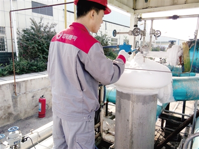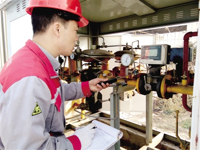 滎密路加氣站員工檢查設(shè)備